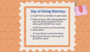 Check out our itinerary below for some of our bold goals for Founders’ Day of Giving. Can you help us accomplish our goals? Share the word with a Sister and your social circle to help us go the extra mile!